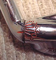 知ってる人は知っている究極のゴルフクラブキワモノ好きの首領としては、実物を一本手元に置いておきたかったのでヤフーのオークションでゲットしちゃいました(笑)。 ちなみにお値段は・・ラーメンと餃子にビール一本付けたぐらいでした。まあ、安い・・ってことですね。 さて、何が究極なのか? 知らない人のために解説しておきましょう。実はこのアイアン、ヘッドが可変式になっており、パターからドライバーまでこの一本で間に合ってしまうという究極の逸品(笑)。 プロゴルファー猿のように、このクラブ一本を背負ってコースに行くと受けること間違いなし・・なんですけどね。残念ながら、ルールの改正によって現在は違反クラブとなります。ラウンド中に機能が変わってしまうのがルール違反。ラウンド中に鉛を貼ったり剥がしたりするのと同じですね。長尺パターで、ネジ式の調整が可能なモデルがありますが、あれもラウンド中にはいじっちゃいけません。ま、そういうわけで幻のクラブになってます。 右の写真がネック部分の調整部。右に数字とアルファベットが並んでいますが、一番上が数字の9です。その下には7、5、3と数字が並び、さらに下にはアルファベットのDとP。 数字はアイアンの番手で、Dはドライバー、Pはパターという意味です。それぞれの番手間にもう一段噛み合わせがあるので、偶数番手とフェアウェイウッドにも調整可能になっています。 一応、ロフトによってSWからパターまで12本の変わりになるのかな? 無茶すればLWにもなるし、逆ロフトで転がしだけのクラブ・・なんてのもできそうだから14本分ってところですね。 機構は極めて単純。 ネック部分がギザギザの噛み合わせになっており、ヘッドを貫通しているネジをゆるめて噛み合わせをずらし、希望の番手にセットしてネジを締めるというもの。ちなみにロフトは可変ですが、シャフトの長さは38インチの固定です。 ![]() 左側が5番アイアンのロフトに調整したもので、右側がSWのロフトに調整したもの。シャフトは38インチなんだけど、これって3番アイアンの長さなのよね。パターからドライバーまでの中間長となるとこの長さになるんだけど、アイアンとしては長いよね(笑)。 ロフトは可変だけど、38インチのPWって使えるかな? まあ、簡単に想像が付くと思うけど、実用度はあまり高くありません(笑)。アイアンの番手特性を決めるのは何でしょうか? ロフト、シャフトの長さ、そしてライ角とバウンス角。 ヘッド形状を見ればわかるけど、ライとバウンスについてはほとんど考慮されていません。7番アイアンぐらいにしておけばそれなりに打てそうですが、それ以下ではバウンスっていうか、ソールが無茶苦茶なことになってしまうので実用度はゼロ(笑)。写真をみても解るけど、フェースの形状も変だしね(これは購入後に削られた可能性もある)。 実物を手にするまでは、もしかしたらプライベートラウンドでなら使えるかな?・・って、思ってたんですけど、伸縮パターと同じようにやっぱりキワモノはキワモノでした(笑)。でもまあ、ゴルフ談義の酒の肴としては面白いよね。奇抜な発想を形にして作っちゃったバイタリティに脱帽です。 首領のお薦め度: ショートコースで使ってみようか(笑)? 65点 |