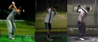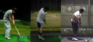 すでにてり先生(HDCPクラブ買いすぎ)、永久スクラッチ仲間のぴっぷさん(HDCP河童)が自分のHPでスイングを公開しているので私もそれに習ってビデオに撮ってきました。ちなみに・・私は公式ハンディキャップは持っておらず、ミズノハンディ18(白熊)です。 えーっと・・スイング見て「ああ、これだめ」「うわ、ひどい」そういうのは仲間内で山ほど頂いておりますのでメールとかいりません ← きっぱり ← (哀願) 一生懸命頑張りますから勘弁してやってください。 なお、スイングムービーは、 下が左から、てり先生、ぴっぷさん、私のパーツ写真です。私は5アイアン振ってます。