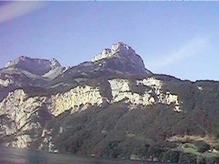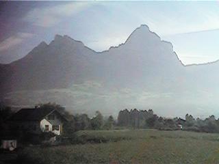 一応早起きしてチューリッヒの駅へ。スイスはたった一日の滞在。列車は昨日よりも古い。今度はコンパートメントでななく、ちょうど新幹線のような車両。チューリヒ湖を左に見ながら、アルプス方面へと列車は進む。しばらくして霧が出てきたので、景色が見えるかと心配したが、山並みを望む頃には晴れてきた。