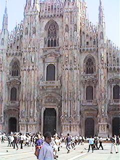 まだスイスではあるが、確かに家の形がすでに違っている。屋根の斜面がゆるやかになり、採光の窓も大きくなった作りで、あきらかに地中海性気候の地に変わった事が実感できる。のどかな田園風景を更に一時間ばかり走って、ミラノ着。この中央駅もイタリア語の洪水で、英語表記はなかなか見当たらない。記号を頼りに、(こういう事になるとべろちゃんは英語を頼りにしてなくて、もともと記号頼みなので、見つけるのが早いんだな、これが)インフォメーションに行き、とりあえずイタリアリラに両替。とりあえず300DMを両替すると37万4000リラにもなって、なんだか金持ちになった気分。要するにリラの価値が低いのね。