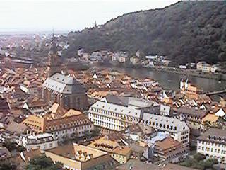 まあ、そうこうしているうちになんとか人心地がついてきたので、S夫妻の案内で、子ども2人も連れてハイデルベルグの街を案内してもらう。街の中心部にはとても古い中世の町並みが残っている。小高い丘の上にあるハイデルベルグ城へと向かう。ケーブルカーがあるのだが、ほんの数分乗っただけでお城の横に到着。お城から見下ろしたハイデルベルグの古い町並みはとても奇麗だ。中央を流れるのはネッカー川。