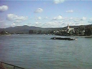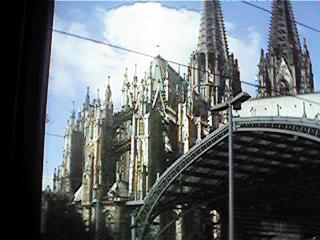 しばらく乗ってるとケルンの大聖堂が見えてくる。本当に鉄道の駅の真横に立ってるんですな。あわててカメラを出したのできちんと写ってませんけど。ケルンを過ぎてしばらくすると、列車はゆったりと流れるライン川(写真1、2)のそばを走りはじめる。ただただ続くラインのゆったりとした流れを見ていると時差ボケもあってなんだか眠くなってきた。